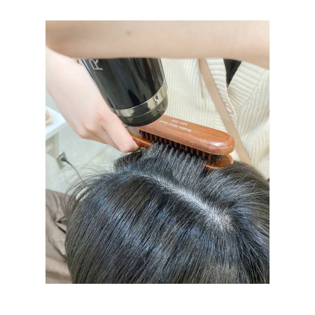 ツインブラシなるものでクセを伸ばしながら乾かします★